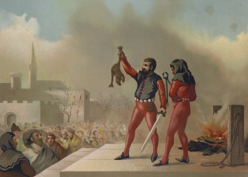 superstition · evil · burning · middle ages · medieval · mankind · suspicion · human · deformity · foetus · fire · humanity · superstitions · Private Collection / Bridgeman Images · / Look and Learn |