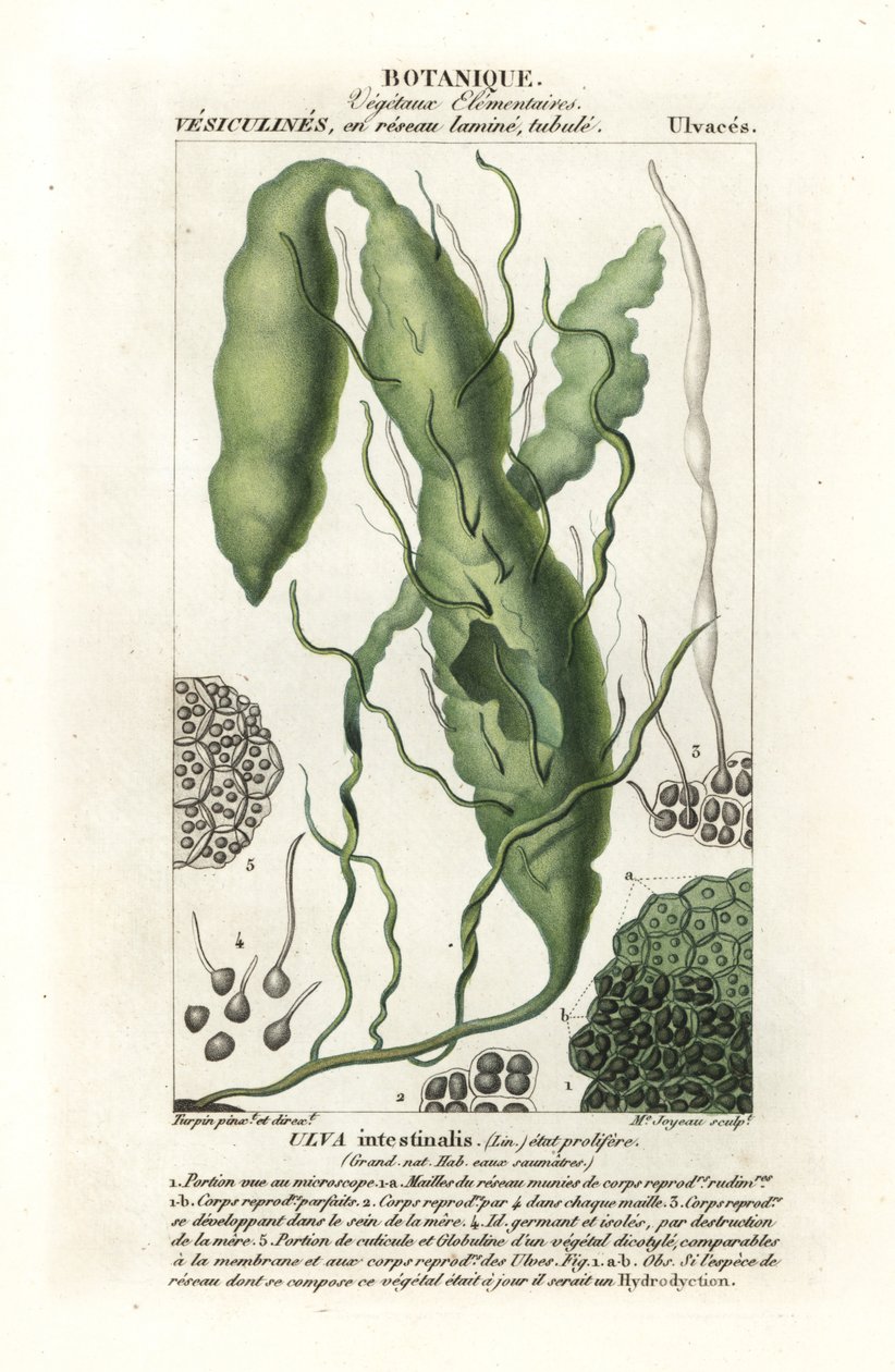 fruit · botany · botanical · natural history · science · food · gutweed · grass · kelp · seaweed · ulva intestinalis · sea lettuce · madame joyeau · handcoloured · copperplate · stipple engraving · dizionario delle scienze naturali · dictionary of natural science · florence · italy · illustration · pierre jean-francois turpin · botanical illustration · plant · edible · vegetable · science · natural history · botany · antoine laurent de jussieu · / Bridgeman Images |
