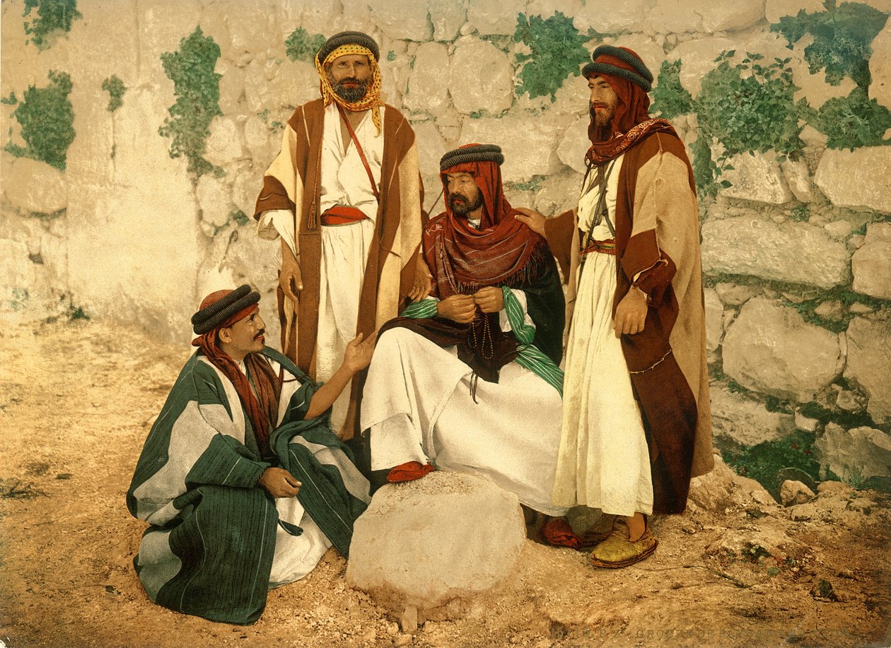 Group of peasants in discussion at Siloam, Jerusalem(Group of peasants in discussion at Siloam, Jerusalem, c.1880-1900 (photochrom))Swiss Photographer |