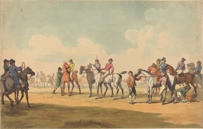 animal · people · male · group · sport · sports · animals · horses · horse · jockey · panoramic · preparation · british · color · race · century · britain · image · preparing · racing · ownership · print · sportsmen · sportsman · horse racing · concept · race course · owner · hand-tinted · caricature · preparations · colour · racecourse · racehorse · 18th century · eighteenth century · hand tinted · aquatint · etching · horse-racing · hand coloured · etching · aquatint · thomas rowlandson · rowlandson · thomas · letterbox format · hand-coloured · heritage art · print · hand-colored etching and aquatint · Heritage Art/Heritage Images