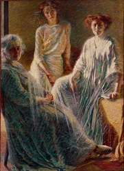 Three women. All three dressed in white, they symbolize the three ages of life. Painting by Umberto Boccioni (1882-1916) 1909-1910(Three women All three dinged in white, they symbolize the three ages of life. Painting by Umberto Boccioni (1882-1916) 1909-1910 Sun. 180x132 cm Private collection)Umberto Boccioni |
