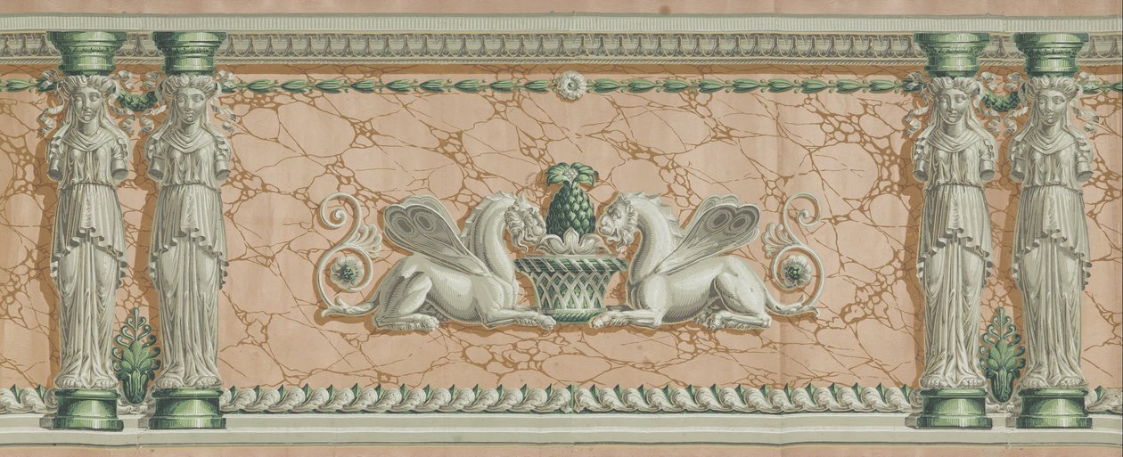 griffin · green · columns · statues · women · wings · lion · ornate · decoration · coral |