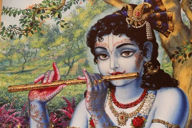 Painting depicting Hindu god Krishna playing a flute outdoors, India(Painting depicting Hindu god Krishna playing a flute outdoors. India)Unbekannt |