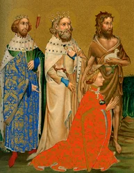 people · religious · religion · monarch · costume · british · color · colour · king · royal · dress · saint · britain · royalty · crown · regal · martyr · regalia · ann ronan pictures · martyrdom · sovereign · edward the confessor · king richard ii · st edmund the martyr · king of england · edmund · manuscript · unknown · st edward the confessor · richard ii · king of east anglia · the martyr · edmund the martyr · king edmund · saint edward t · Ann Ronan Picture Library/Heritage-Images