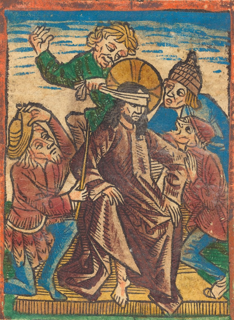 germany · people · male · religious · german · arts · country · religion · color · washington · medieval · christianity · christ · jesus · jesus christ · location · century · gallery · concept · blindfolded · hand-tinted · blindfold · humiliating · humiliation · art gallery · mocking · colour · humiliated · mediaeval · middle ages · national gallery of art · hand tinted · 15th century · fifteenth century · hand coloured · woodcut · unknown · art centre · hand-coloured · heritage art · print · hand-colored woodcut · Heritage Art/Heritage Images