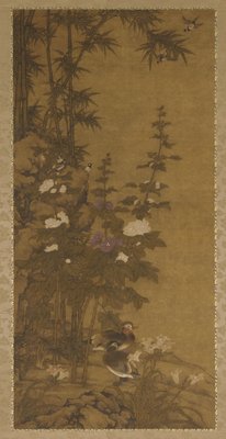 Mandarin ducks and cotton rose hibiscus Mandarin Ducks under Smartweed Ducks on the Autumn Stream Spring Play in a Tang Garden Cats, Birds, and Flowers Magnolias, peonies, and pheasants Two Gentlemen Contemplating a Waterfall, Ming Dynasty, 16th Century Willow, Geese, and Kingfisher Kesi Panel: Rocks and Chrysanthemums Mandarin Ducks under Smartweed Hollyhocks and Ducks Ko Ssu Panel: Rocks and Chrysanthemums Hanging Scroll: Mallards Plants and Insects, 1368-1644 Bamboo and Sparrows Tapestry: doves bathing in a bowl, rocks and bamboos, Possibly Ming dynasty, 1368-1644 Pheasants Ko Ssu Panel: Rocks and Narcissus, 1700s - 1800s Kesi Panel: Rocks and Narcissus Listening to the Pines in a Riverside Pavilion, 16th century Bamboo Landscape Mandarin Ducks and Flowers, Ming or Qing Dynasty Young bamboos A Phoenix and two cranes under a tree, Ming dynasty, 16th-17th century Fisherman Boating under Winter Trees Hawk Pursuing Water Fowl, Ming Dynasty, late 15th-early 16th century Ducks, Torrent, and Overhanging Rocks Landscape with Goats Flowers and Goldfish, 18th century