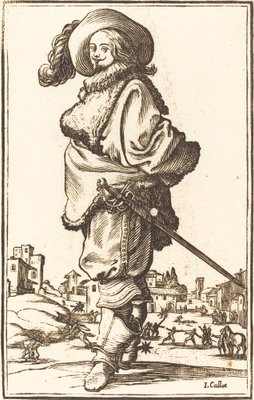 standing · people · male · footwear · arts · country · french · france · costume · clothes · weapon · weapons · boot · boots · dress · baroque · location · century · sword · clothing · blade · swords · concept · spurs · lorraine · warfare · spur · 17th century · black white · black and white · weaponry · aristocracy · aristocrat · seventeenth century · nobleman · jacques callot · woodcut · unknown · baroque era · heritage art · print · callot · jacques · iacopo callott · callote · jacques · callotti · jacques · Heritage Art/Heritage Images