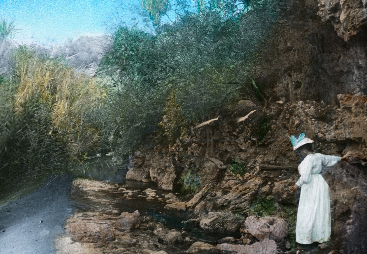 river · africa · water · female · women · woman · people · country · continent · geography · color · colour · hot spring · hot springs · location · century · algeria · algerian · lady · north africa · 19th century · 1900s · 20th century · nineteenth century · geographical feature · thermal spring · hammam meskoutine · photograph · landscape · hammam el meskoutine · unknown · The Print Collector/Heritage Images |