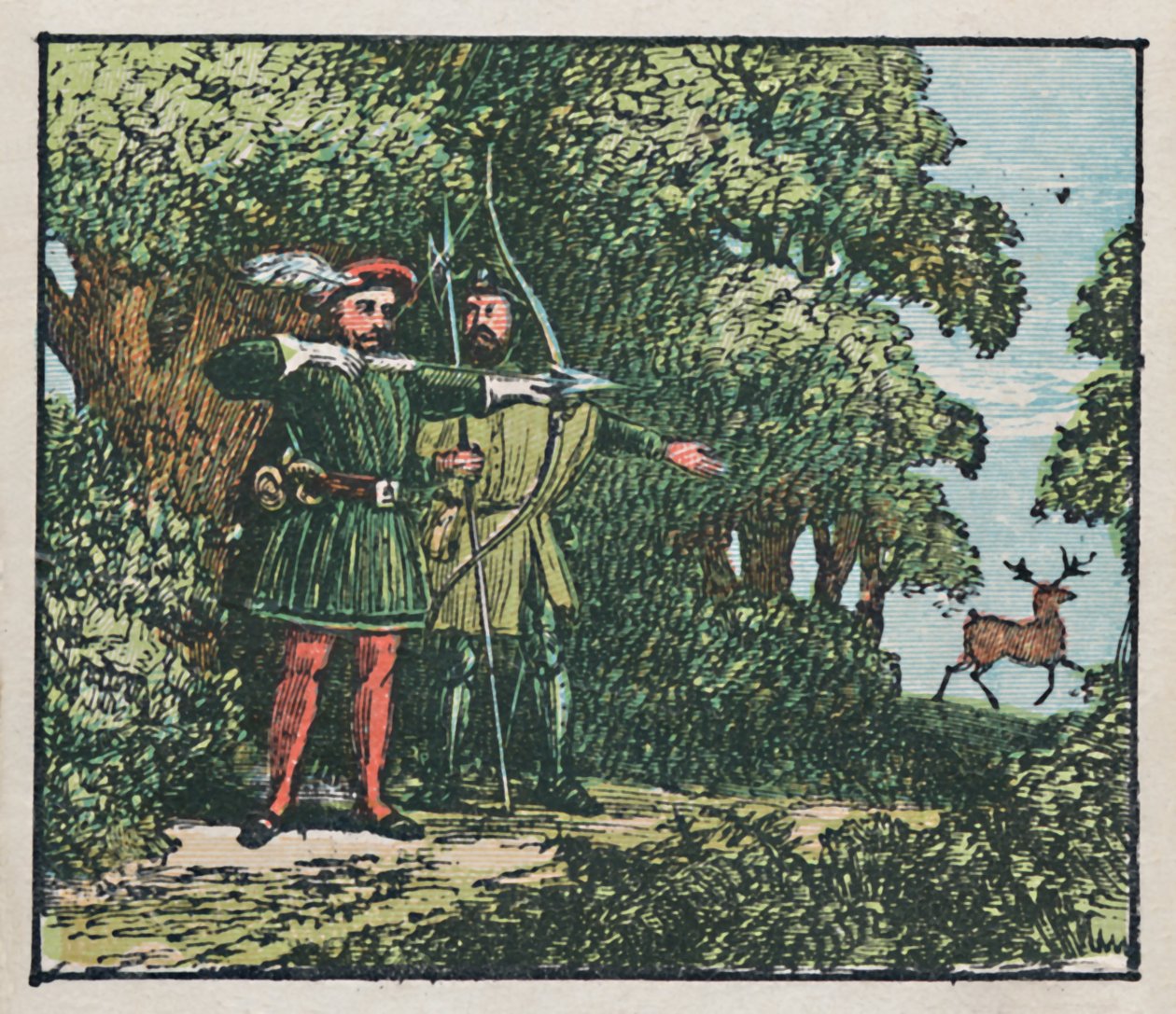 forest · animal · england · people · male · sport · country · british · geography · english · color · deer · hunting · nottinghamshire · location · century · britain · archery · archer · mythology · bow and arrow · colour · nottingham · 1910s · 20th century · bowman · mythical figure · robin hood · tgn · sherwood forest · unknown · The Print Collector/Heritage Images |