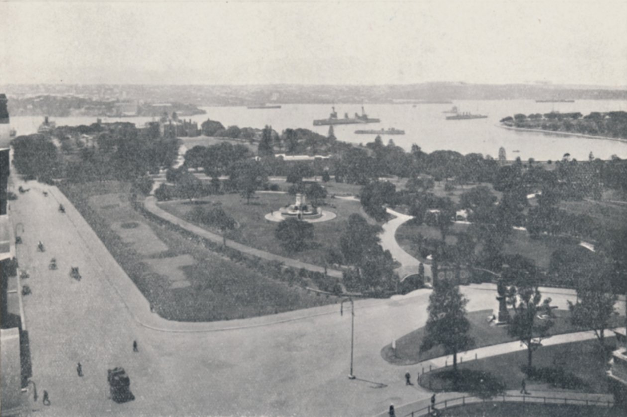 nature · exterior · outdoors · scenic · tree · road · people · plant · arts · new south wales · australia · harbour · book · view · lane · south pacific · avenue · location · century · vista · literature · concept · sydney harbour · twenties · monochrome · black white · black and white · background people · elevated view · 1920s · 20th century · port jackson · outside · street · photograph · landscape · unknown · arial view · barnard · black · adam charles black · ac black · h clive barnard · australia new zealand and oceania in picture · h clive · adam charles · The Print Collector/Heritage Images