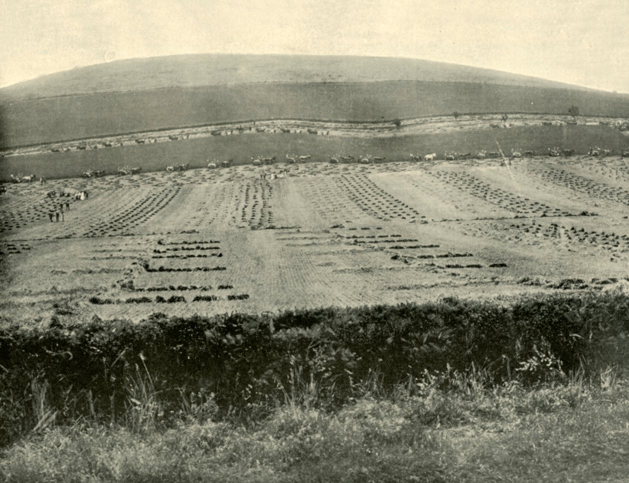 exterior · outdoors · hill · hills · harvest · agriculture · field · fields · people · male · farming · australia · australian · country · agricultural · geography · competition · oceania · distance · machine · machinery · rustic · harvesting · victoria · farmland · location · century · distant · old fashioned · concept · hedgerow · comparing · binding · reaping · association · federation · commonwealth of australia · black white · black and white · background people · ballarat · reaper · 1900s · 20th century · rural · history · historic · geographical feature · reaping machine · rural life · outside · photograph · landscape · unknown · werner company · regionalism · federated australia · blowhard · The Print Collector/Heritage Images |