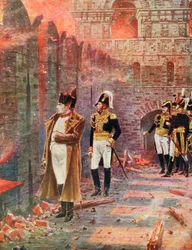 people · male · destruction · country · french · france · corsica · watching · burning · fire · flame · flames · color · colour · uniform · dress · location · century · moscow · russia · soldiers · soldier · concept · corsican · 19th century · nineteenth century · napoleonic wars · napoleon bonaparte i · napoleon bonaparte · portrait · unknown · napoleon l · bonaparte · napoleon · boney · general bonaparte · bonaparte general · 1st consul bonaparte · first consul bonaparte · bonaparte the corsican · napoleon i · napoleone di buonaparte · emperor napoleon · napo · The Print Collector/Heritage Images