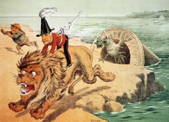 Cartoon about Napoleon Bonaparte carried by the devil: May the devil prevail the wish of France(Cartoon about Napoleon Bonaparte carried by the devil: May the devil prevail the wish of France - in “” Napoleon I, caricatures, dummy collection””. 1814 - 1815. B.H.V.P.)Unknown artist |