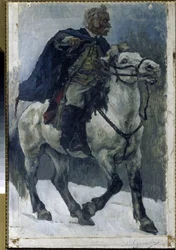 Alexander Suvorov on Horseback. The Russian Hero Crossing the Alps at the Head of Russian Troops During the Italian Campaign (1799-1800)(Alexandre Souvorov (1729-1800) a cheval. (Alexander Suvorov on Horseback). Le heros russe est decrit alors qu'il traverse les Alpes, a la tete des troupes russes, durant la campagne d'Italie (1799-1800). Peinture de Vasilli Ivanovich Sourikov (Vasily Surik)Vasilij Ivanovic Surikov |