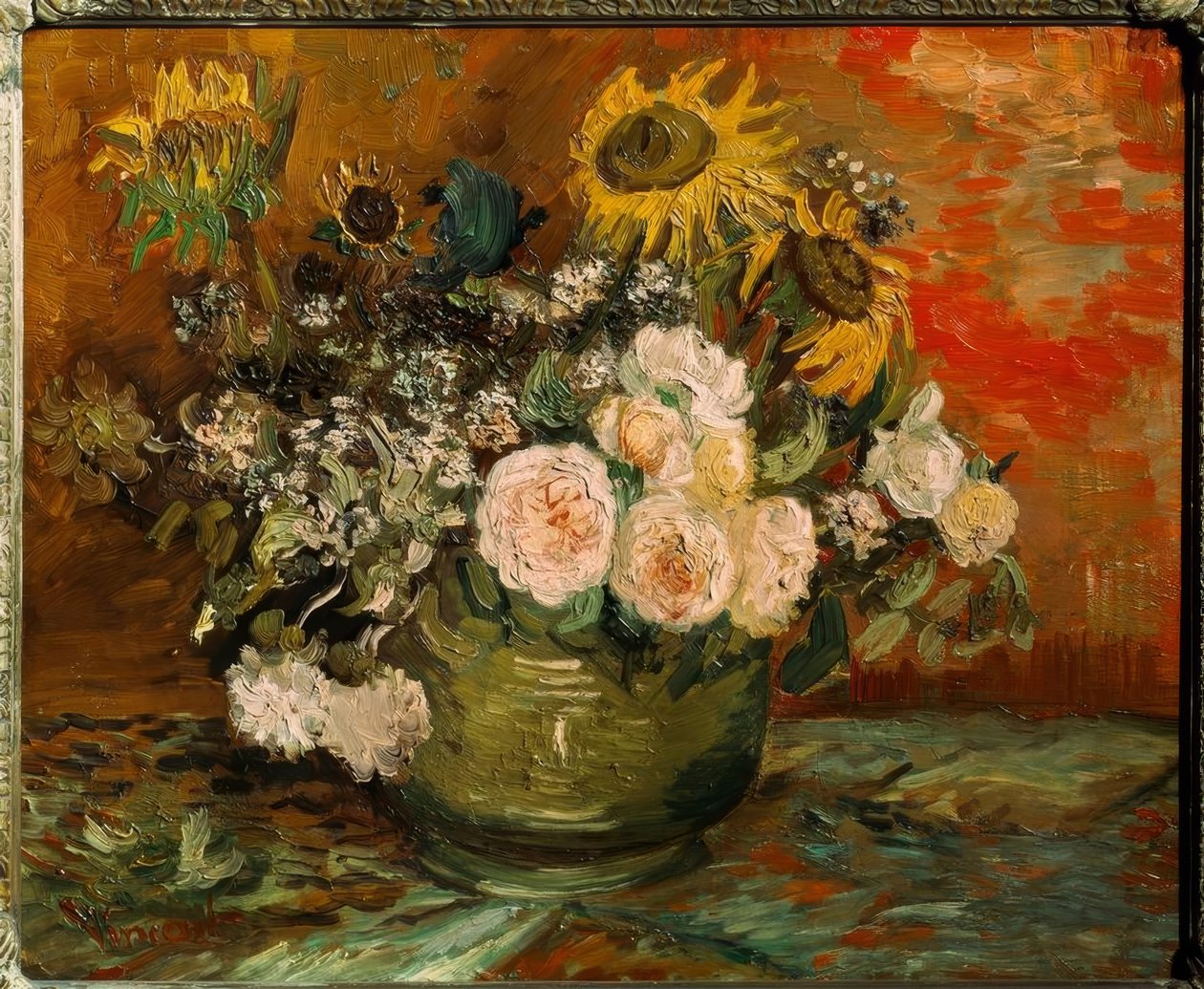 Roses and Sunflowers(Rosen und Sonnenblumen)Vincent van Gogh |