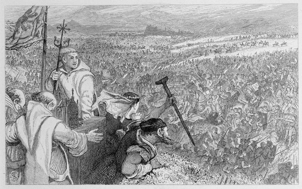 print · scottish king · victory · battlefield · monk · altar · flag · 21 june 1314 · Private Collection / Bridgeman Images |