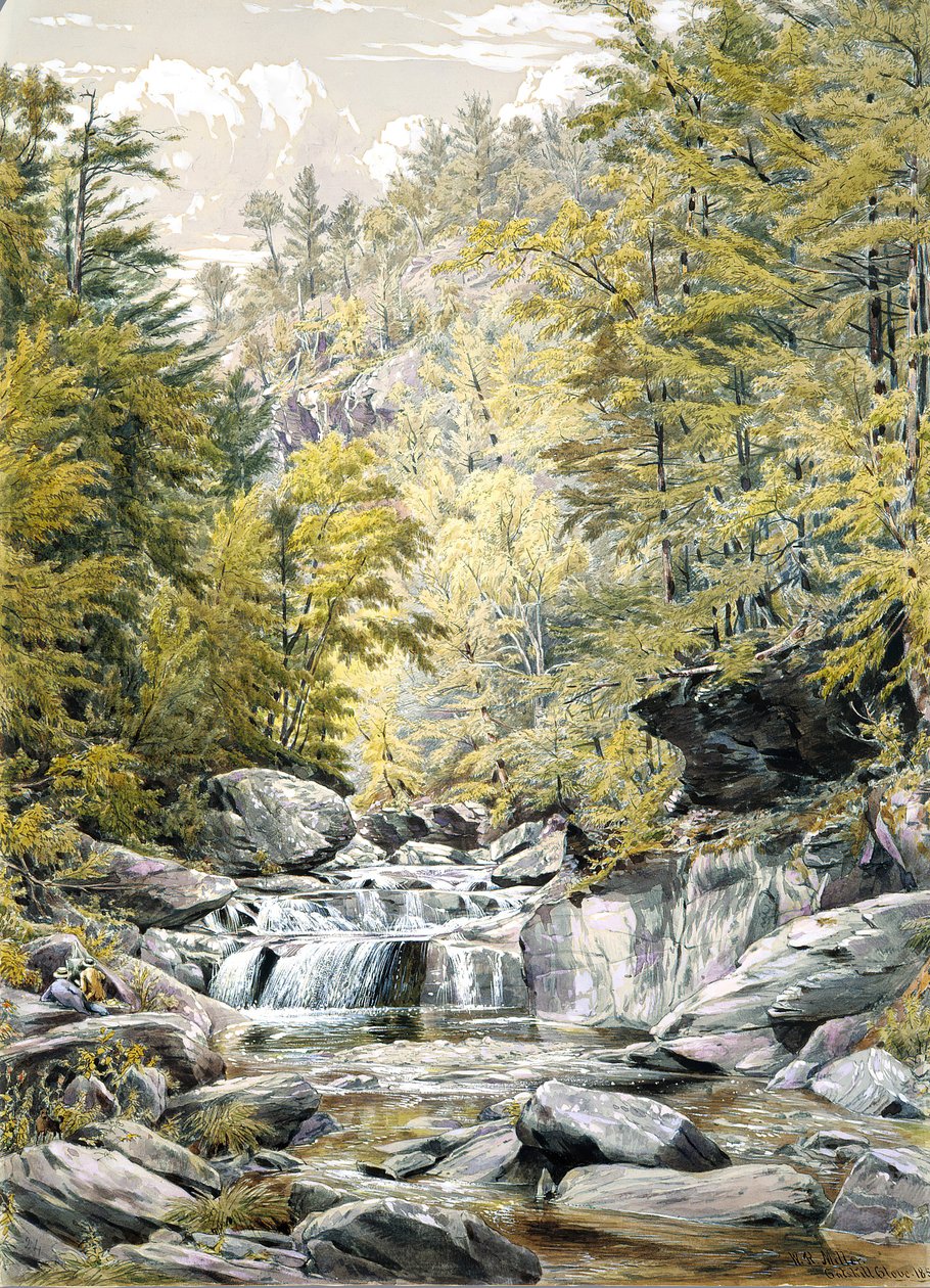 nature · forest · river · water · tree · landscape · waterfall · plant · plants · painting · rocks · rock · mountain range · country · fall · museum · geography · gorge · location · century · natural phenomena · cataract · watercolour · gouache · catskills · catskill mountains · united states of america · colour · the met · metropolitan museum of art · the metropolitan museum of art · 19th century · nineteenth century · american · trees · america · geographical feature · landscape · united states · heritage art · kaaterskill clove · kauterskill clove · catskill clove · and graphite on light green wove paper · william rickarby miller · miller · william rickarby · watercolour · gouache · and graphite on light green wove paper · Heritage Art/Heritage Images |