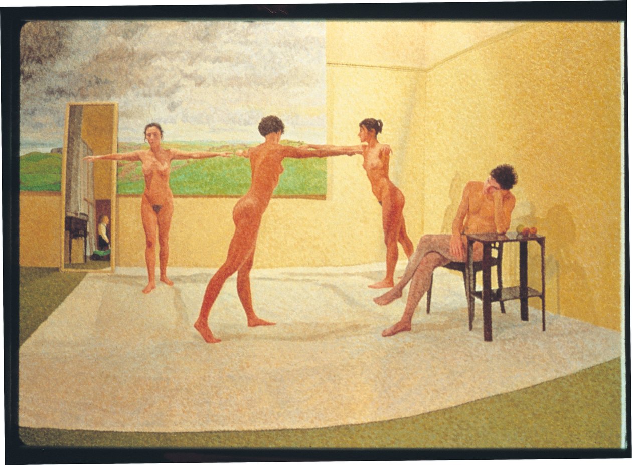 pointillism · painting · dance · figurative formation · four figures · nude women · nude females · mirror · artist in mirror · seated male · man and women · Glynn Vivian Art Gallery, Swansea, Wales / Bridgeman Images |