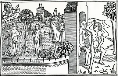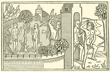 history · genesis · bible · angel · adam · historical · naked · temptation · the garden of eden · The Fall · Private Collection / Bridgeman Images · / Look and Learn